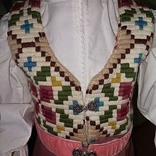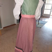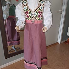 Redesign festdrakt str. 7-8 år selges. Sydd trykknapper på skuldrene så man kan justere lengden på livet. Nå 1300,- med skjorte og 1100,- uten. Finnes bare 1 av denne.