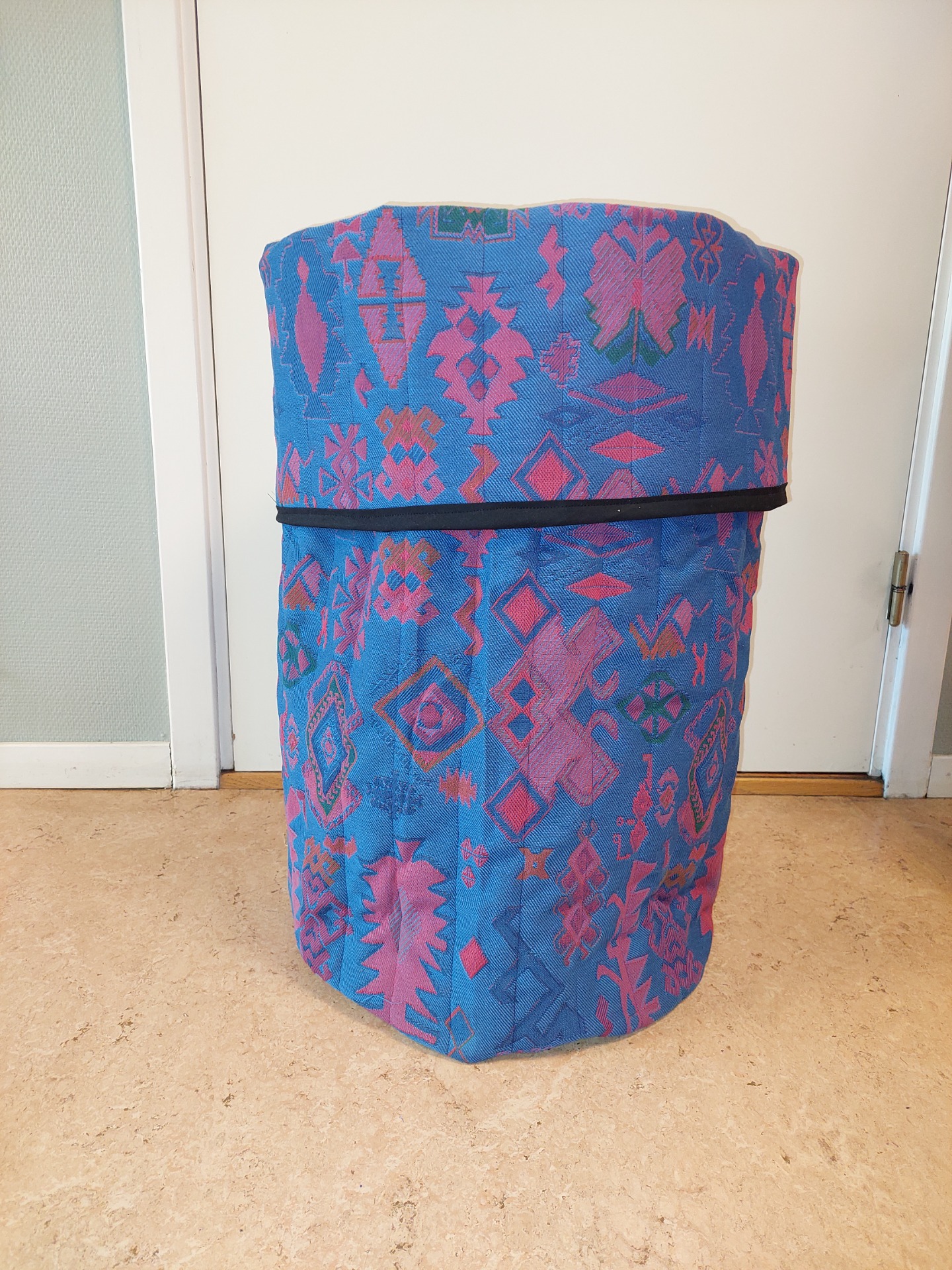 Oppbevaringskurv med spiler i siden. 62 cm hør og40 cm i diameter. Helt nysydd, redesign. Flott til garnkurv eller f.eks. sokker.
